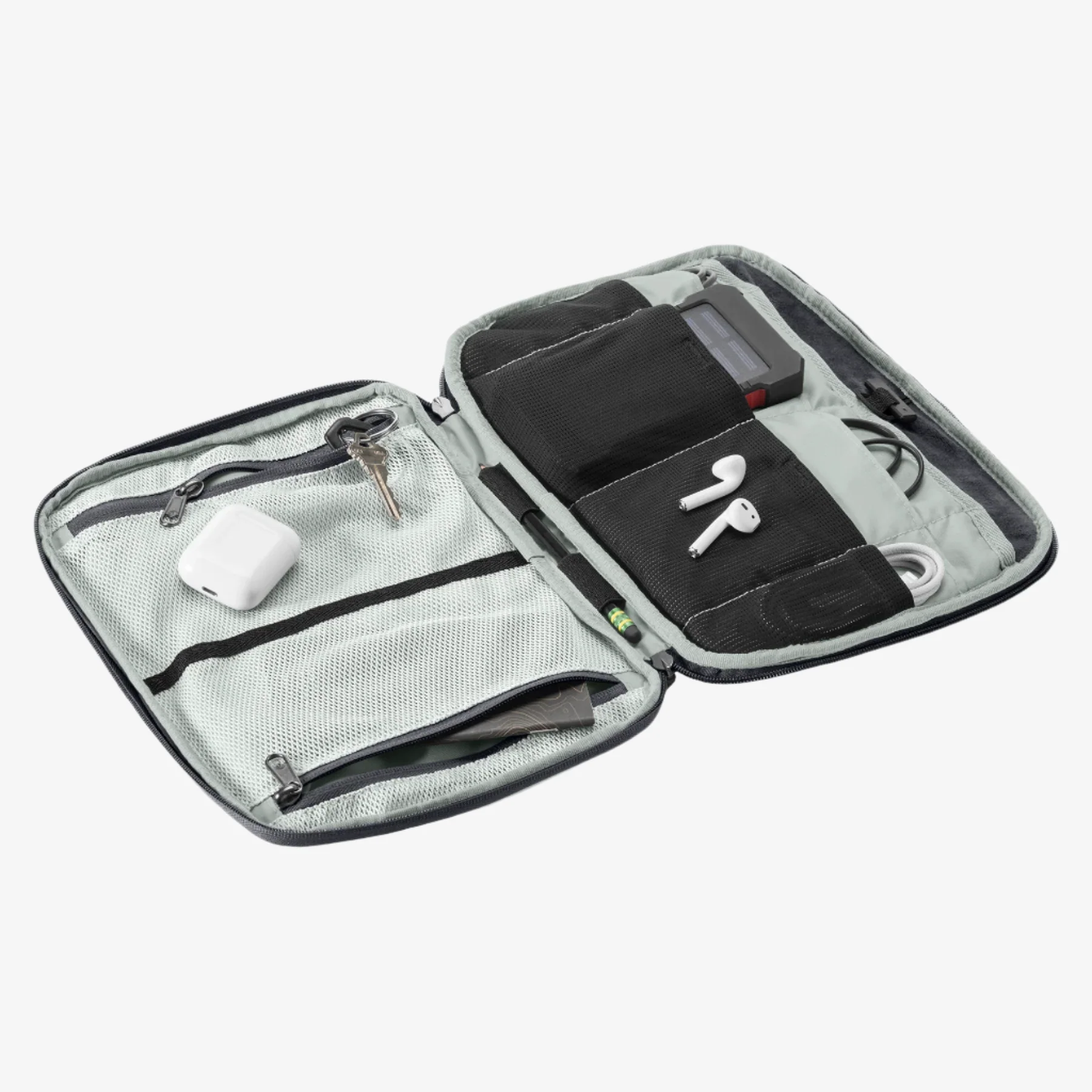 Earbuds, charging cords, pens, plug converters—all these and more travel untangled in the comprehensive Pack-It® E-Tools Organizer Pro. Inside, stretch mesh pouches and zippered pockets secure accessories and make them instantly locatable. A fleece-lined, padded sleeve protects small electronics. Made of 100% recycled fabrics, it’s like an artist’s palette—but for techies.
